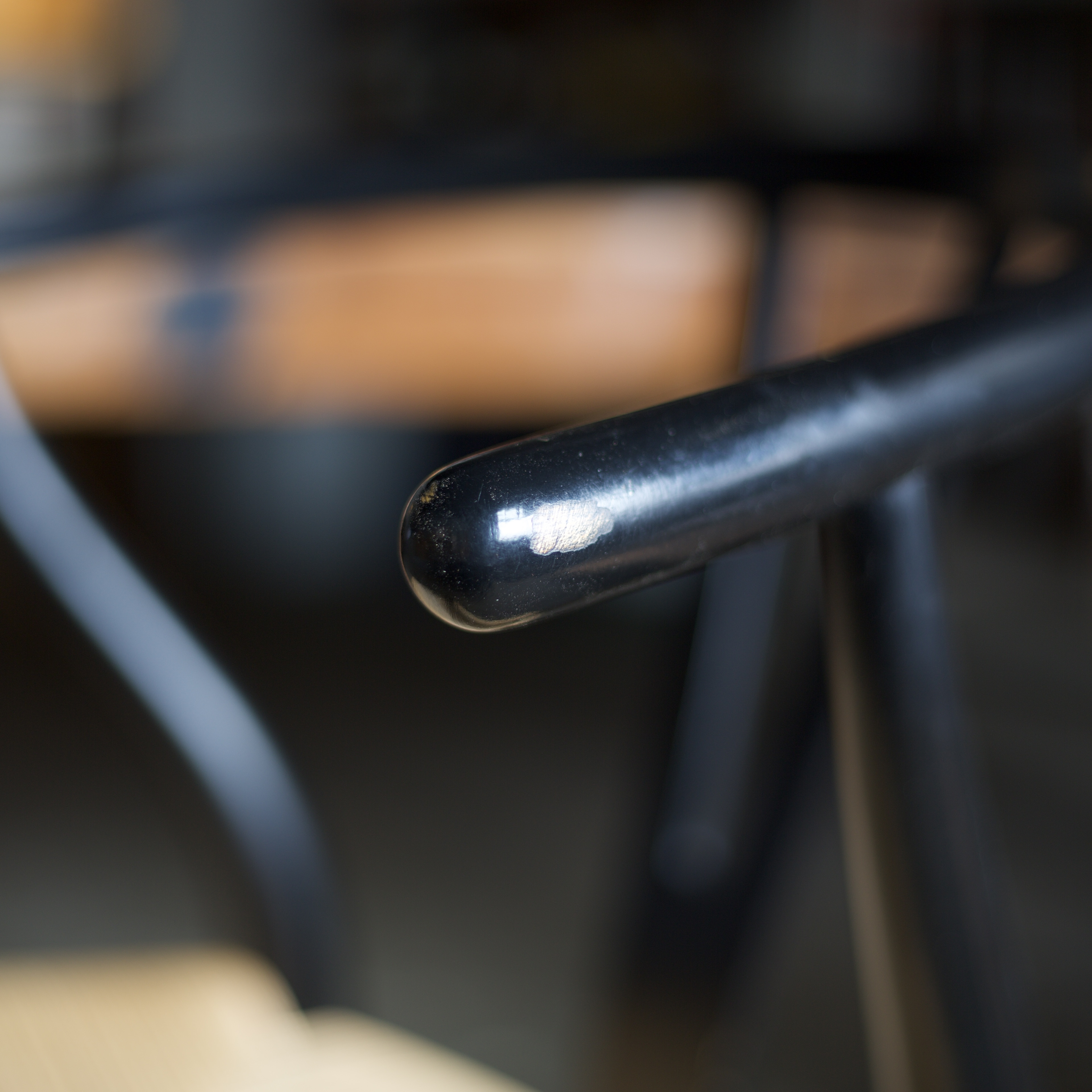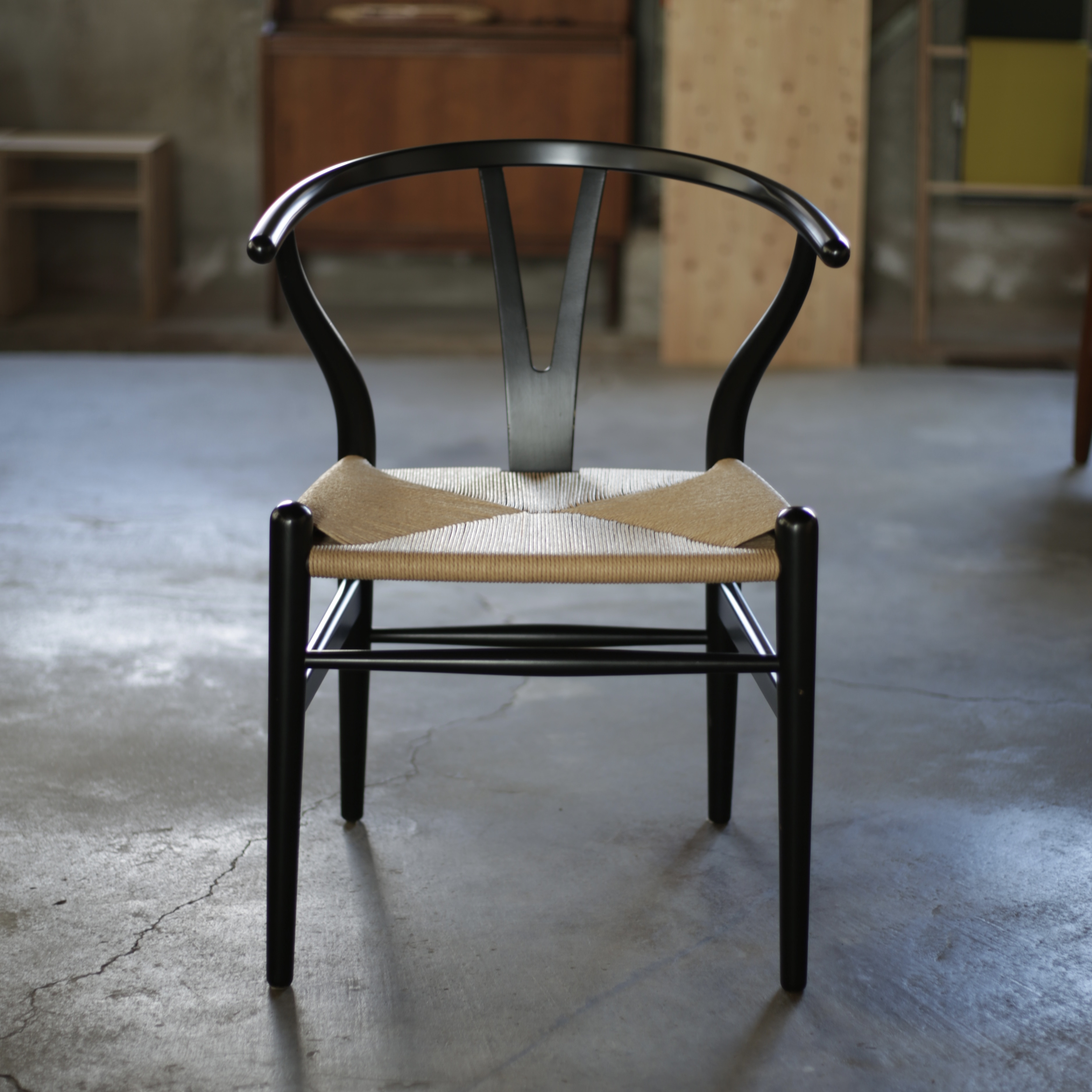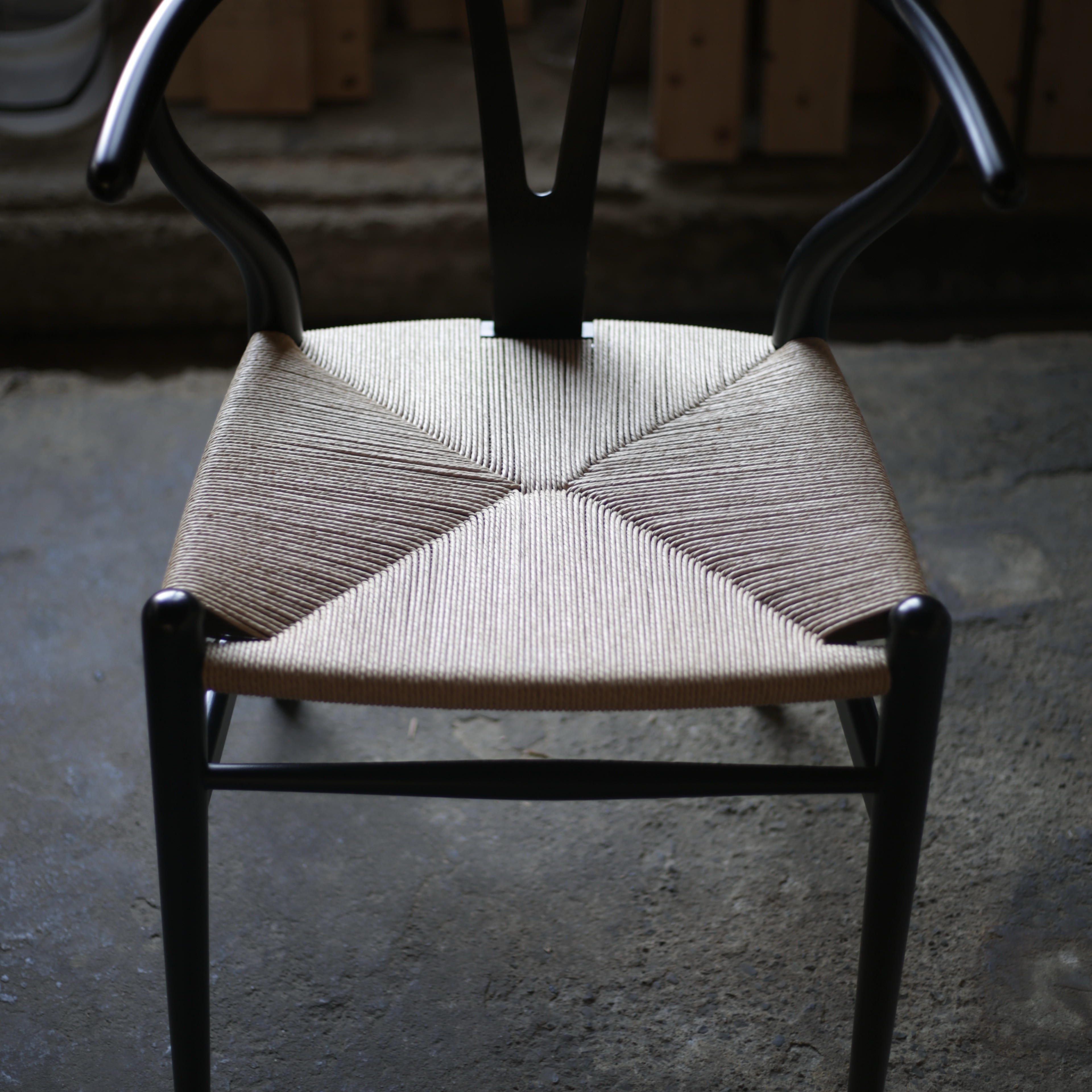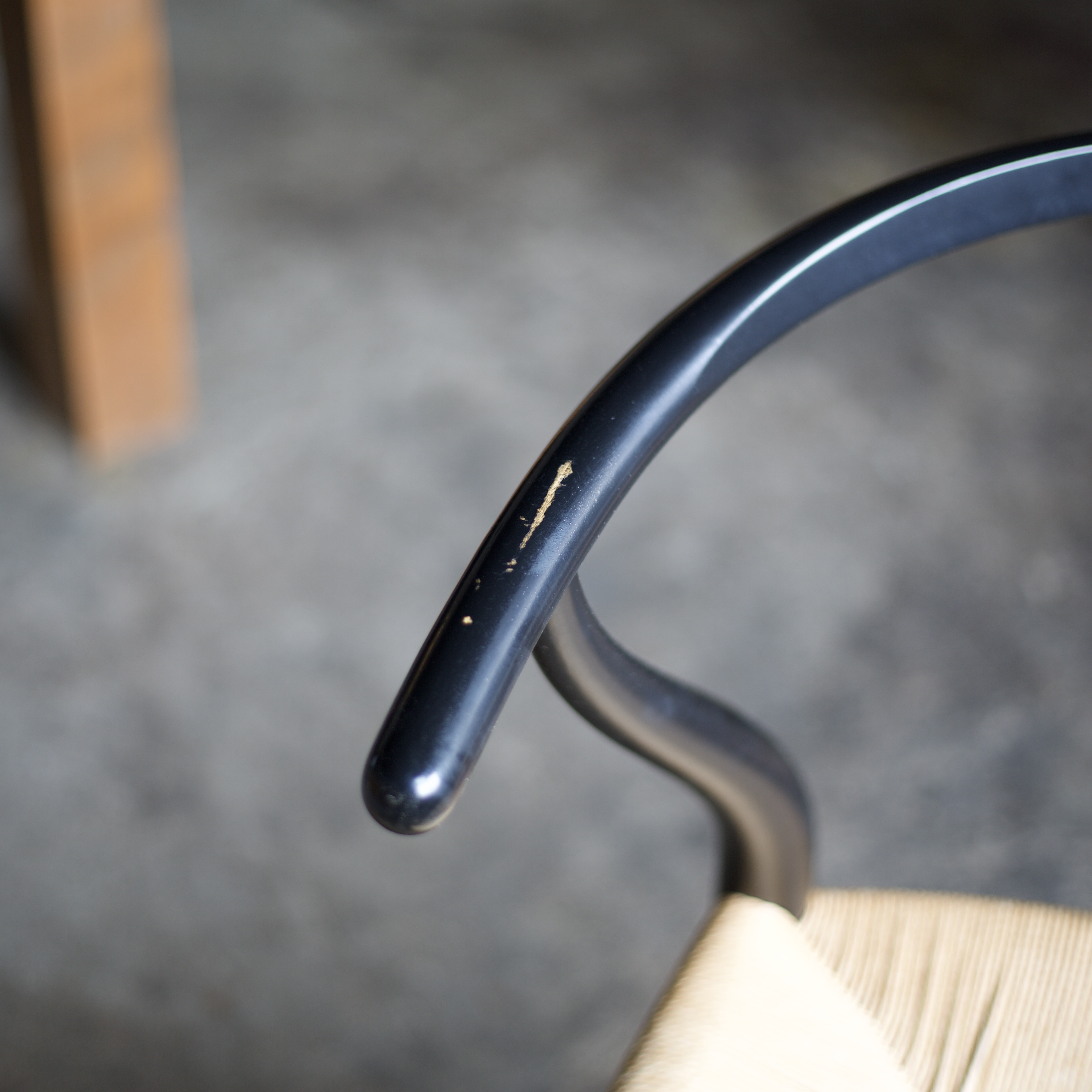 ブラック塗装されたCH24(Yチェア)のアームのみの塗装塗り直し修理です。